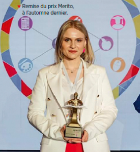 2023 a été la meilleure année de ma vie professionnelle. Je suis la première enseignante débutante à recevoir un titre au Gala Merito – un prix pour les enseignants roumains du primaire et du secondaire –, et la seule prof de français, pour le moment. Le projet Merito recueille chaque année des recommandations publiques et des communautés locales, des étudiants, des parents, des enseignants. Douze enseignants de l’enseignement pré-universitaire sont sélectionnés chaque année parmi plusieurs centaines de recommandations, venant de tout le pays. Ce titre est un grand honneur, mais aussi un grand défi. Le fait d’avoir le soutien du Projet Merito et de mes collègues me motive à accélérer le rythme et à maintenir la qualité d’apprentissage. Je continuerai ce beau chemin didactique avec le même enthousiasme, et le titre que j’ai reçu est la preuve à la fois que je le mérite et que je le peux.