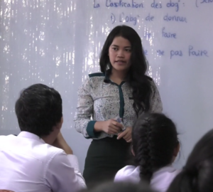 Les cours que j’ai eus au lycée ne m’ont pas seulement donné des connaissances linguistiques considérables, mais aussi beaucoup de beaux souvenirs et des connaissances générales nécessaires sur la France et l’Europe, ainsi que des activités culturelles et de loisirs. Le programme de classe bilingue était plus actif que le programme khmer. Nous, en tant qu’élèves francophones, nous étions parfois les animateurs de l’école ! 😉 À mon époque, grâce à la Fête de la francophonie (le 20 mars), j’ai eu l’occasion d’apprendre la danse traditionnelle du Ballet royal du Cambodge, de faire du théâtre, etc. Cette ambiance exceptionnelle de la classe bilingue a contribué à me faire tomber amoureuse de plus en plus de la langue française. Et j’ai retrouvé cette belle ambiance francophone à l’université à l’URDSE.