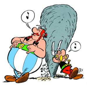 Tout est parti de ces noms de baptême astucieux et rigolos : la bande dessinée, dans sa trame scénaristique et sa mise en forme, en découle tout entière. La fameuse potion magique ne devait durer qu’un album, le premier, mais sous la pression des lecteurs du magazine Pilote, elle accompagnera le héros dans sa petite gourde aux côtés et Obélix, « tombé dedans quand il était petit », dans son insatiable gourmandise.