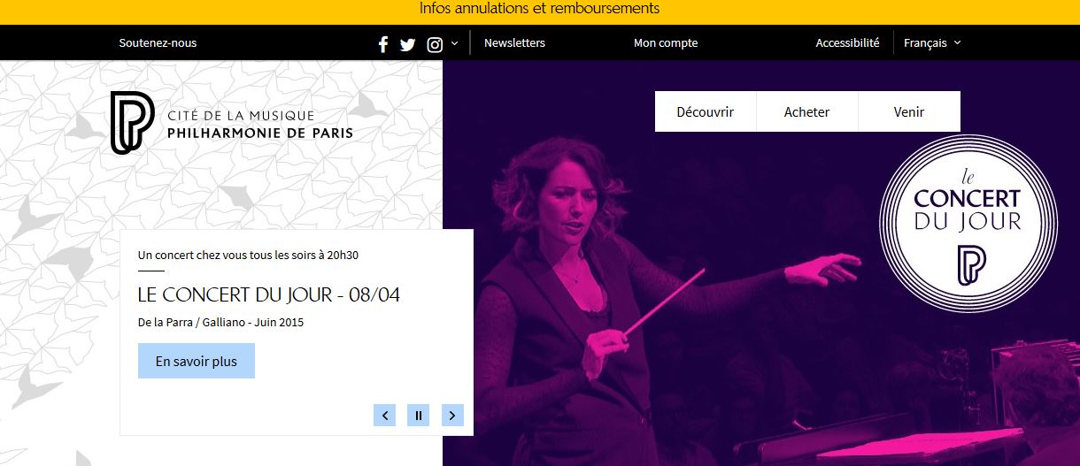 Philharmonie de Paris : https://live.philharmoniedeparis.fr/Concerts.html