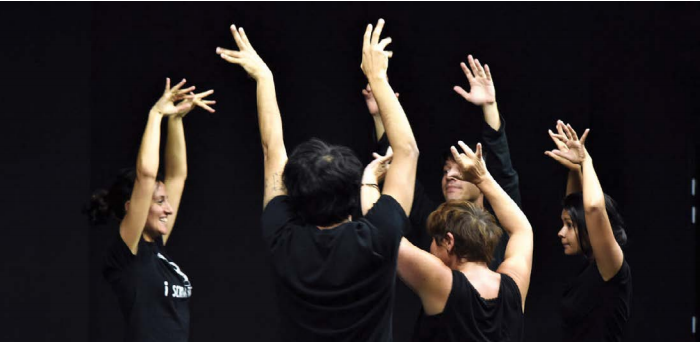Pour associer rythme et prononciation, on fera un geste sur chaque syllabe, comme on battrait la mesure (une syllabe égale un temps), lentement d’abord, à la suite du professeur, puis de plus en plus vite, jusqu’à enchaîner sans hésiter. Vivre la rythmique du français dans son corps induit une relation personnalisée à cette langue, et la rapproche de soi. Les apprenants introduisent volontiers leurs propres variations : ils syllabisent une réplique en pilant du mil, en maniant un coupe-sushi, ils dansent les mots en hip-hop, etc. Familiarisé avec la coordination geste/diction, chacun s’aventure à faire bouger le français en lien avec sa propre culture, son identité. Comme référence universelle, le mouvement a l’avantage de créer des passerelles interculturelles et, par là, de redonner confiance en soi dans l’acte de dire et de communiquer en langue étrangère.
