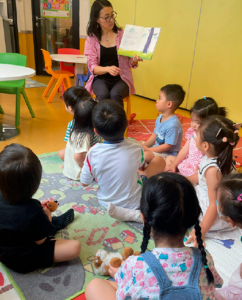 activités manuelles et créatives, de la lecture, des jeux ou des activités de motricité. On danse beaucoup, on chante. Lorsqu’ils s’amusent, les enfants apprennent tellement vite et intègrent naturellement le vocabulaire et les structures grammaticales pourtant compliquées de la langue française. La tendance naturelle des petits à la répétition favorise également la mémorisation : lorsqu’on apprend une chanson, par exemple, ils l’écoutent et la chantent en boucle. J’ai aussi des rituels en classe, avec des phrases magiques comme « Je voudrais boire de l’eau, s’il te plaît Miss Ly Wah » qu’ils entendent, répètent et savent très rapidement dire. Ce sont de vraies éponges. Les jeunes enfants ont également une très bonne prononciation.