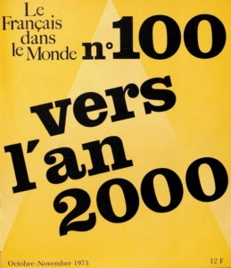 * Toutes les citations sont issues du numéro 100 du Français dans le monde, oct.-nov. 1973. Coordination et Édito de Guy Capelle « Pour le meilleur et pour le pire », p. 7-9 et p. 10 pour Joshua Fishman.