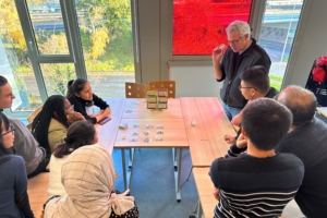 Les jeux de société s’inscrivent parfaitement dans une approche actionnelle en favorisant la motivation, la mémorisation et développement d’interactions spontanées, notamment par la coopération, la stratégie et l’écoute. Le jeu en classe de langues stimule la créativité et favorise la cohésion de groupe. Il est également un terrain propice à l’apprentissage, car il fait basculer le cours dans une situation authentique de pratique de la langue et d’échanges entre apprenants. Il rend donc pertinent l’apprentissage de la langue pour pouvoir comprendre les règles et échanger avec les autres. Les parties de jeu activent ainsi la participation de tous les apprenants qui sont friands de découvrir chaque semaine de nouveaux titres, et s’empressent de photographier les boîtes.