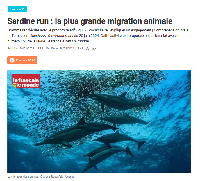 À l’écoute de la biodiversité , Jusqu’où va la science ? du 18/05/2025, Caroline Lachowsky avec Le français facile avec RFI Activités de niveau B1 Télécharger le reportage Audio Transcription : Extrait de l’émission Un journaliste : Jusqu’où va la science ? Bonjour Caroline Lachowski. Caroline Lachowsky : Bonjour Julien. Le journaliste : Pourquoi se mettre… Lire la suite